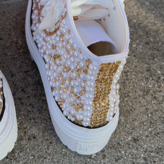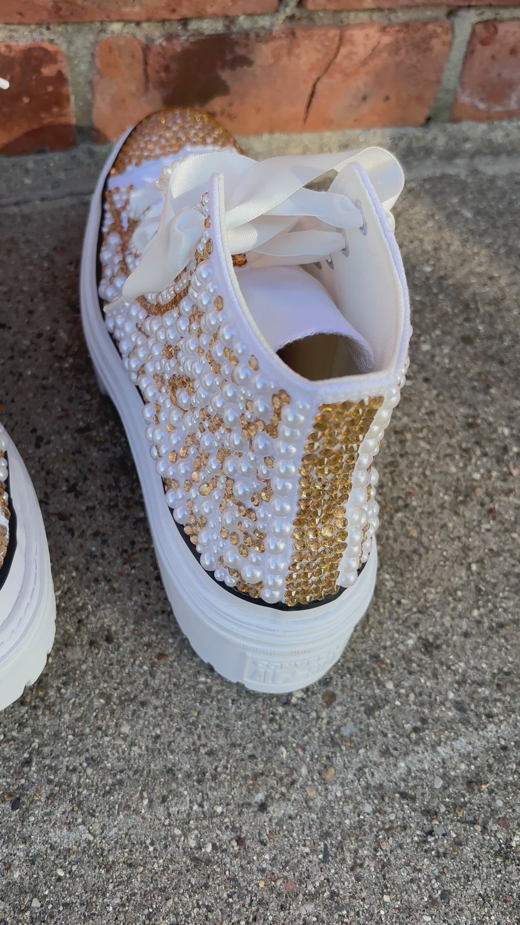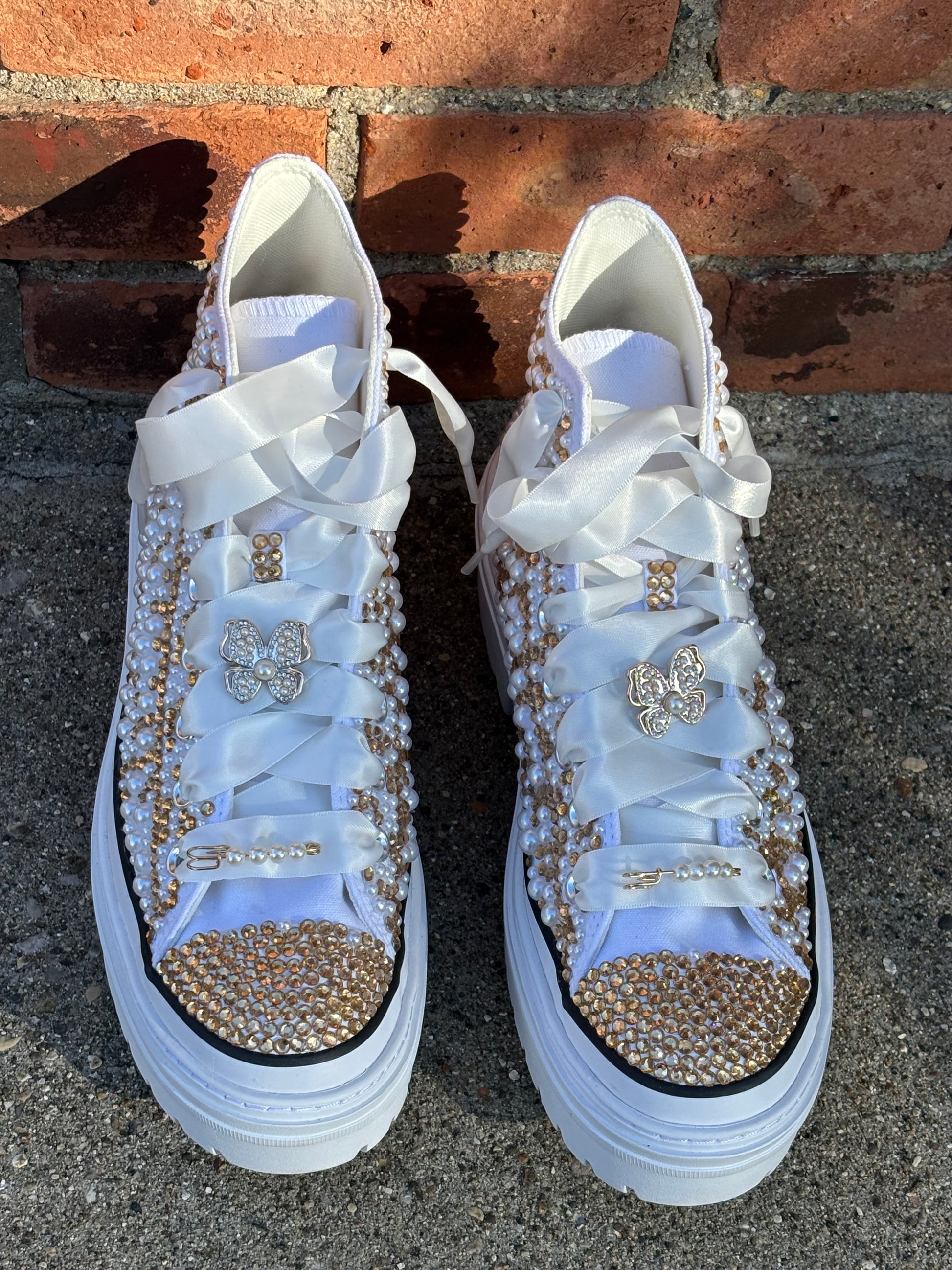Elevate your shoe game with our custom bling Converse! Stand out from the crowd with these unique and personalized sneakers. With dazzling bling accents, your shoes will not only look amazing, but also make a statement. Show off your individuality and style with our Custom Converse!